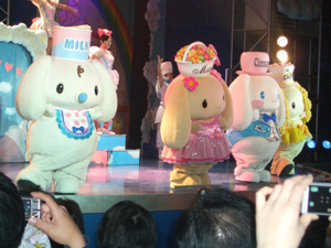 お昼まえについた我々は、サンリオハートフルパレード"Believe"(ビリーヴ)を見ました。見ごたえのあるショーでした。中国雑技団っぽい一面もありました。