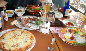 ビールとウインナーをはじめ、ピザ、カルビ丼、お子様ランチなど豪華に注文しました。