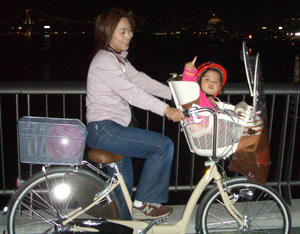 あと、うちの子は1歳3ヶ月位から自転車に乗せています。もちろん前座席+ヘルメット装着ですが。